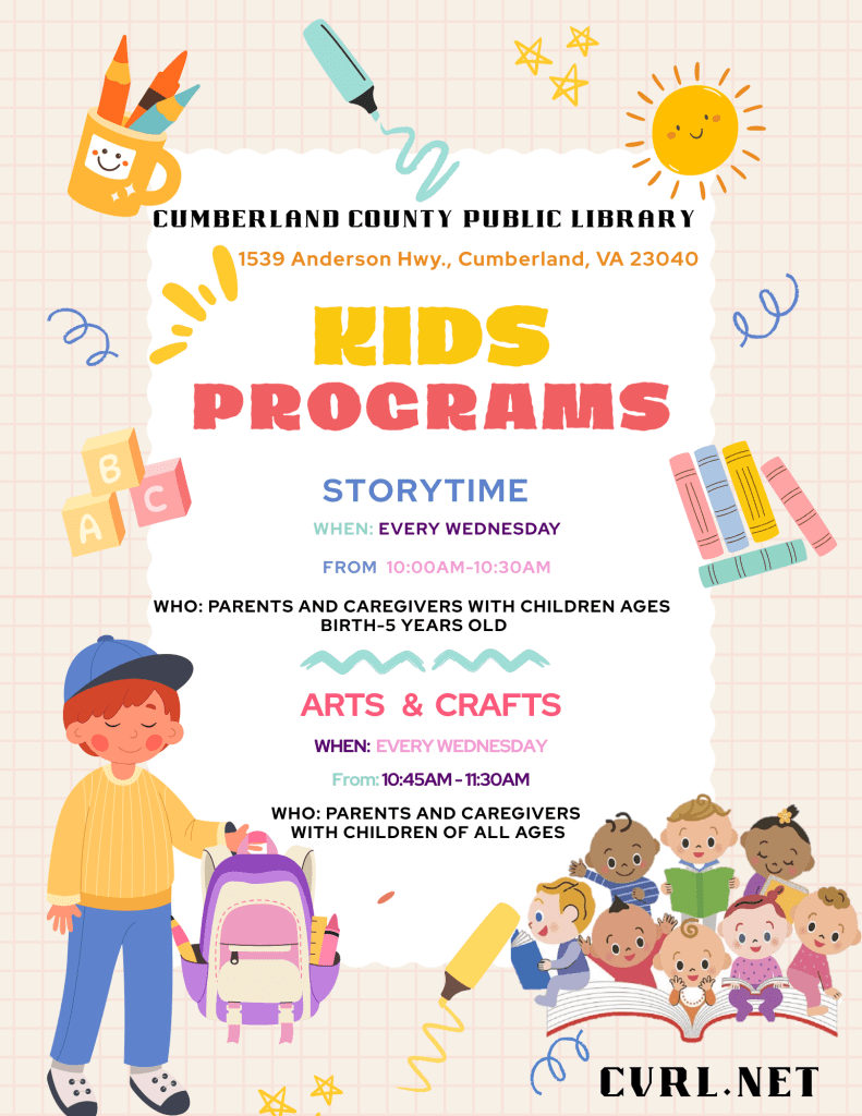 Parents and caregivers with children ages Birth – 5 years old are invited to share books, rhymes and an activity each week! We will meet in the library children’s program room.